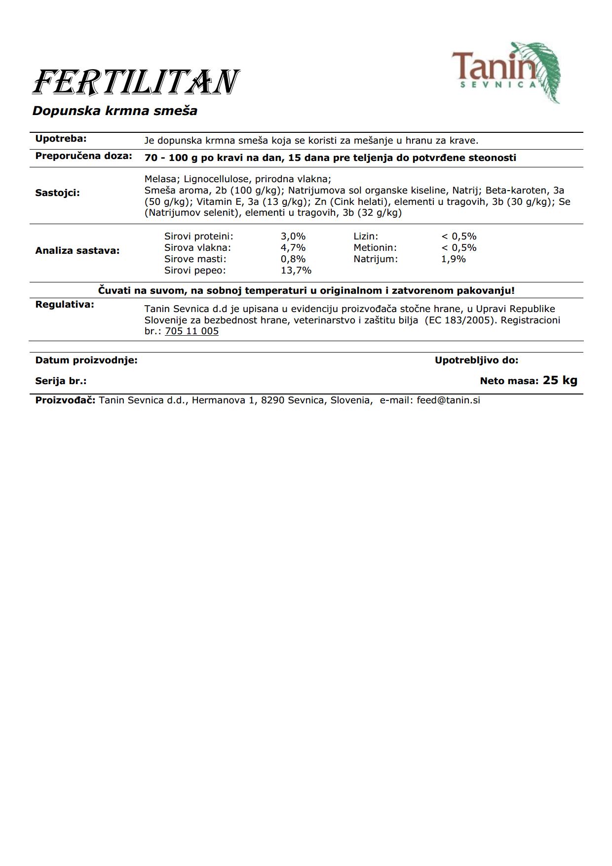- Zn (Cink helati), elementi u tragovih, 3b (30 g/kg).